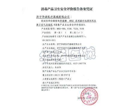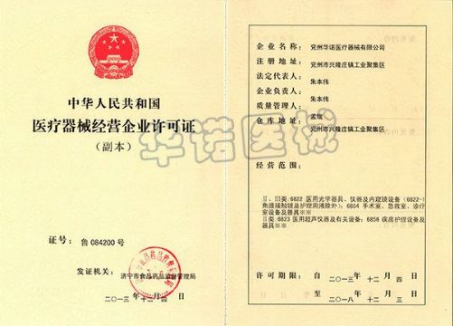 持证单位: 济宁华诺医疗器械有限公司