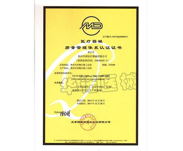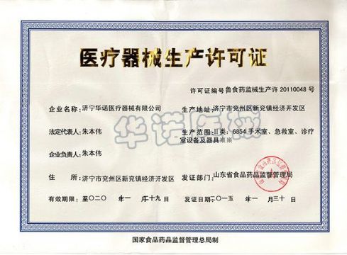 资质单位: 济宁华诺医疗器械有限公司