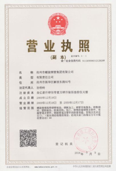 沧州市螺旋钢管集团有限公司网站由中国化工招标网制做维护。内容真实性及解释权归沧州市螺旋钢管集团有限公司负责。