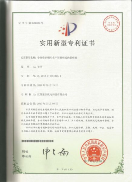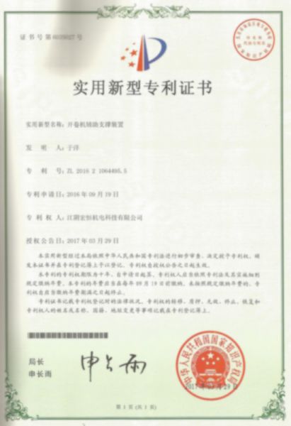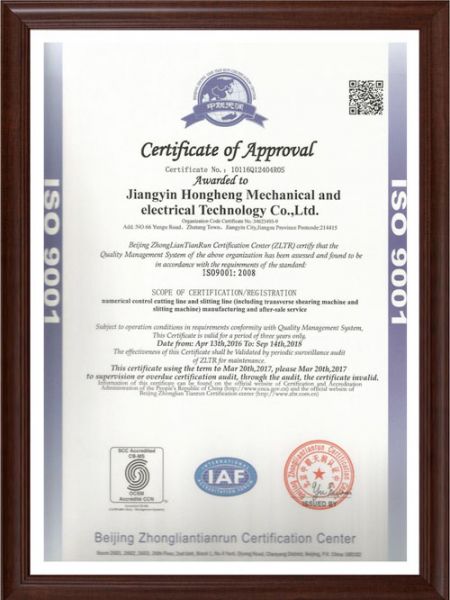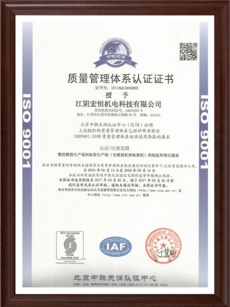 持证单位: 江阴宏恒机电科技有限公司
