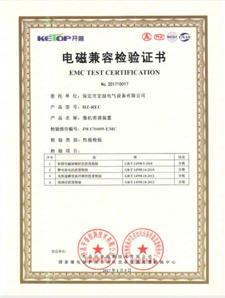 资质名称: 电磁兼容证书 |